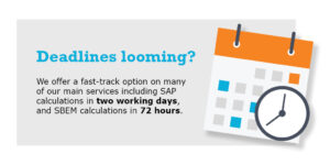 Our Technical Team can provide you with fully compliant SAP calculations in just two working days, and SBEM calculations in 72 hours. Energy Statement reports and other planning documents can also be produced quicker if your deadlines require it.